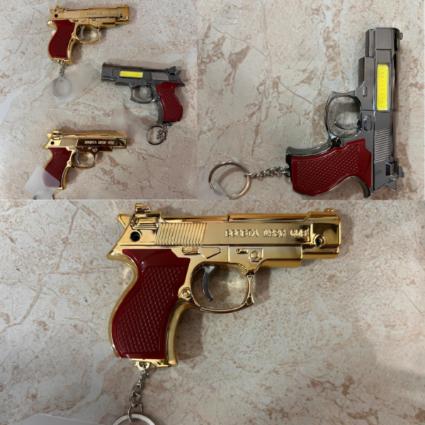 3 in 1 Gun Keychain with Flash and Laser has a 3 different feature, Flash & Laser within Gun Keychain. With this Keyring decorate your Car, Bike, Scooter, Locker, Wardrobe, Home and Office keys. It is made of Plastic material. It is strong, durable keychain which is non-slip, non-fading, waterproof and sturdy in nature. This can be use for New Year Gifts, Birthday Gifts, Christmas Day Gifts, Thanksgiving Gifts, Valentines Day Gifts, Mothers Day Gifts, Fathers Day Gifts for backpack, wallet, handbag, car Key Pendant.