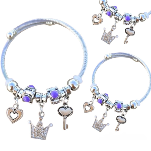 Beaded Bracelet with Heart and Crown Charms for Girls