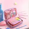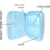 Light weight and durable provides great protection against dust, Scratches and Bumps with Strong zippers, Easy to open and close Appearance and design zipper securely keeps the case closed and prevents very small items from falling out. Easy to maintain Both inside and outside are easy to wipe clean pouches for school kids. This Case can be use to Carry and organize your Stationary product, Cosmetics, miscellaneous parts, tools and accessories Size 23 X 16 X 6 CM.